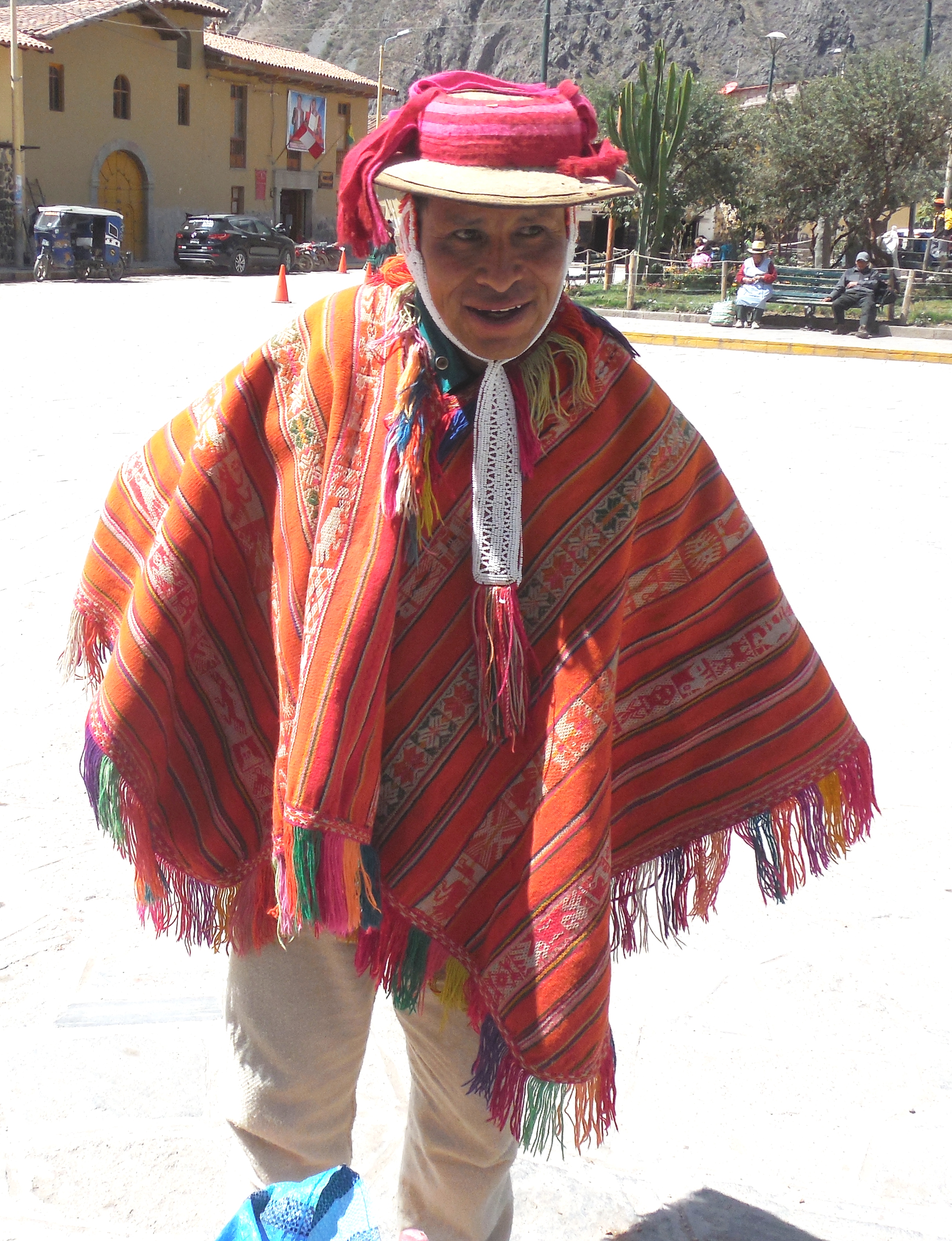 A Peruvian man in traditional garb