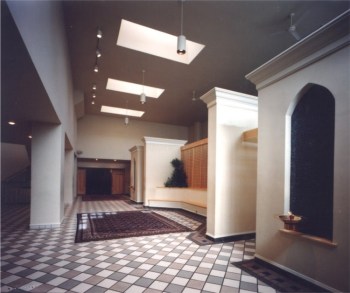Adaptive remodeling of an abandoned nightclub into an Islamic Jamatkhana with Prayer Hall and social space for 1000 members in Edgewater, Chicago. The only remnants of the original space are the exterior brick foundation walls.