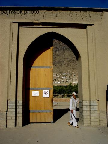 The wooden door in the Babar Garden. December 22, 2008 Aga Khan Trust for Culture rebuilding Babar Garden Afghanistan 360 × 480