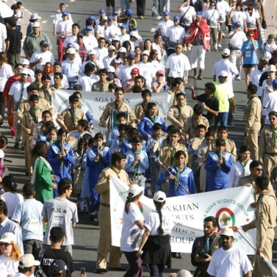 Aga Khan Scouts & Guides band leading Terry Fox Run in Dubai