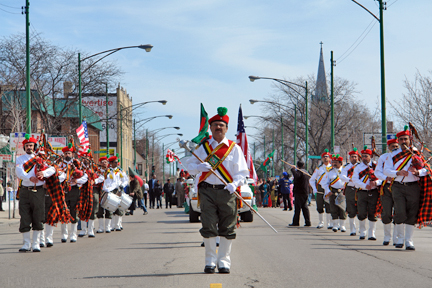 In this picture, the Midwest Ismaili Pipe Band is leading the Bangladesh Independence Day Procession / Parade on Saturday, March 29, 2008 in Chicago.