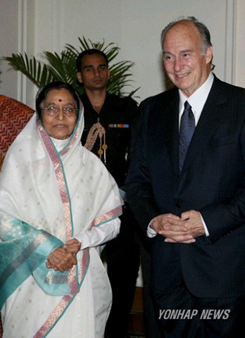 Yonhap News: The spiritual leader of Shia Imami Ismaili Muslims, the Aga Khan meets with Indian president Pratibha Patil (L) in New Delhi, India on 13 May 2008.
