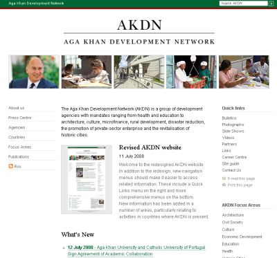 In addition to the redesign, new navigation menus should make it easier to access related information. These include a Quick Links menu on the right and more comprehensive menus on the bottom. New information has been added in a number of areas, particularly relating to activities in countries where AKDN is present.