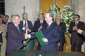 The other memo of understanding which is connected with construction of Kansareen Garden was signed by Aleppo Governor, Tamer Hija, and Luis Monreal, Director General of Aga Khan Trust for Cultural.