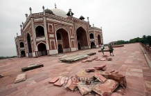 Red stones kept for restoration work at Humayun’s Tomb in New Delhi, India on 22 July 2010