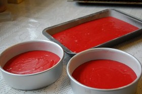 My latest adventure was Red Velvet! If you’ve seen my previous blog posts, you may remember me baking red velvet cupcakes last summer – the recipe I used previously was definitely less than perfect. Since then, I had come across a recipe from Throwdown with Bobby Flay and decided to try CakeMan Raven’s Red Velvet recipe, which he was kind enough to provide access to, online! This recipe took leaps and bounds from the previous recipe so I would encourage all of you red-velvet cake lovers out there, to give this recipe a try. The way the recipe is laid out is so easy to follow that you’ll be making it every chance you get!