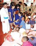 During the celebrations, scouts and girl guides from the Ismaili Community took turns to feed the disabled children.