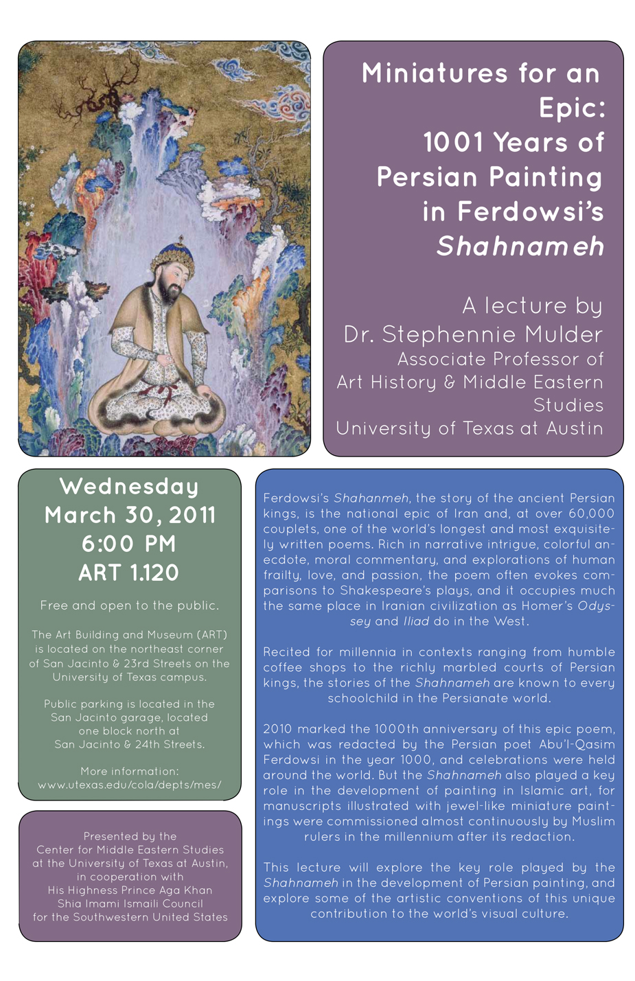 A Lecture by Dr Stephennie Mulder – Associate Professor of Art History & Middle Eastern Studies University of Texas at Austin. Presented by the Center for Middle Eastern Studies at the University of Texas at Austin in cooperation with His Highness Prince Aga Khan Shia Imami Ismaili Council for the Southwestern United States.