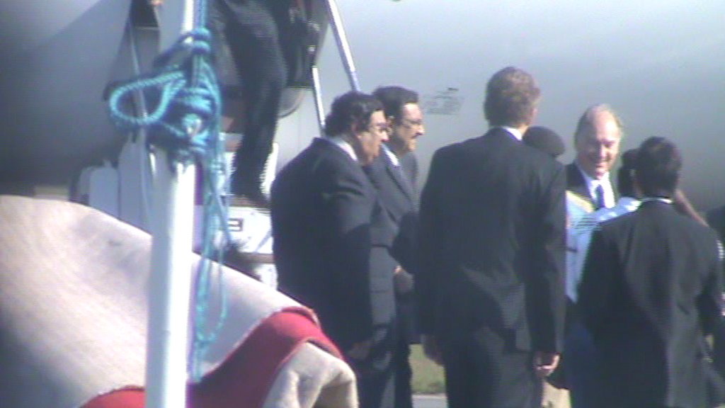 Longing to have a glimpse of the beloved ImamJust then we heard the loud drone of a jet’s engine and we quickly walked towards the corner of the building outside. Lo and behold! There was a set of glass doors (closed) but through which we could see the runway and THE IMAM’S PLANE COMING TO A STOP JUST IN FRONT OF THOSE VERY GLASS DOORS!!