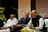 The Aga Khan, spiritual head of Ismaili Muslims, centre, smiles as he attends the inauguration ceremony of the Aga Khan Academy with Andhra Pradesh state Chief Minister N. Kiran Kumar Reddy, left, and Minister for Human Resources Development M.M. Pallam Raju in Hyderabad, India, Friday, Sept. 20, 2013. AP Photo/Mahesh Kumar A.