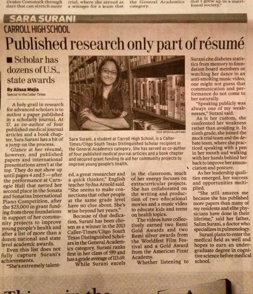 Sara Surani: Published research only part of resume - Scholar has dozens of U.S. state awards
