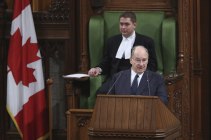 The Aga Khan, spiritual leader of Ismaili Muslims, addresses a joint session of Parliament as House of Commons Speaker Andrew Scheer listens in Ottawa February 27, 2014. REUTERS/Chris Wattie (CANADA)