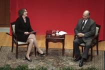 The Aga Khan answers questions from Brown University President Christina Paxson after addressing a full house at the Salomon Center at Brown as part of the Stephen A. Ogden Jr., Memorial Lecture on International Affairs program.