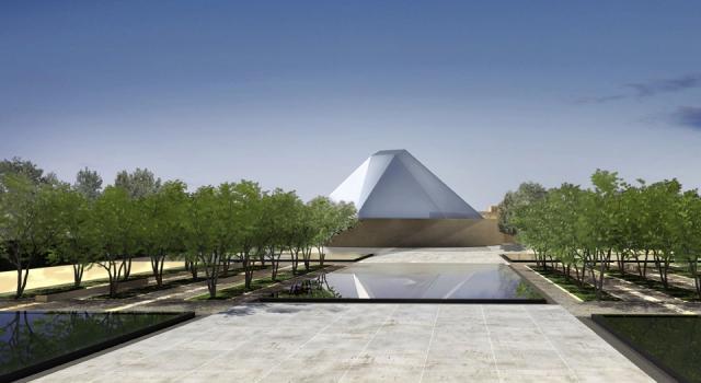 Constellations – Aga Khan Park, Toronto – Echoes of Paradise – the Garden and Flora in Islamic Art – Ismaili Centre, Toronto reflected on the water pools of the Park, image courtesy of Imara Wynford Drive September 3, 2014 Constellations | Aga Khan Park, Toronto – Echoes of Paradise: the Garden and Flora in Islamic Art 640 × 350