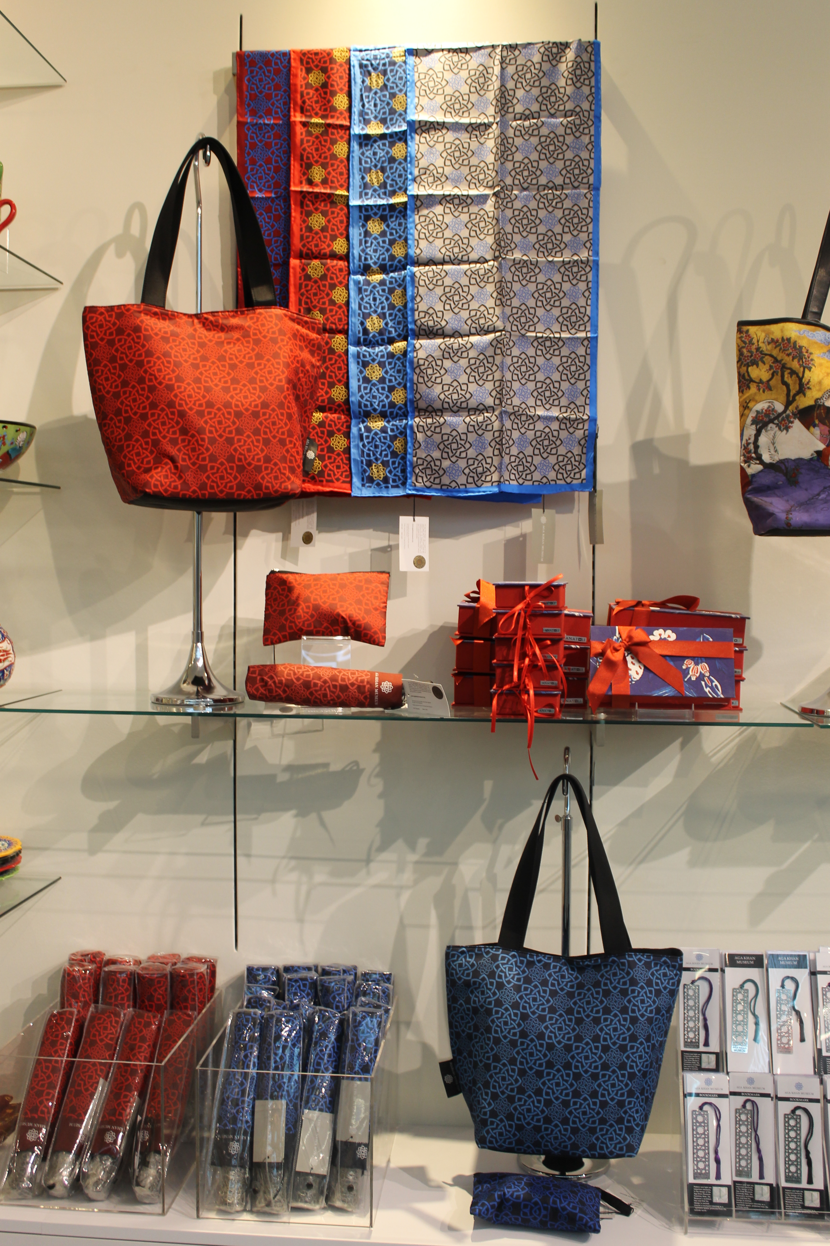AKM Gift Shop – AKM proprietary products. September 11, 2014 Discovering Aga Khan Museum: The Gift Shop 2848 × 4272 Brightly colored arabesque patterns on umbrellas, scarfs and ladies bags. Brightly colored arabesque patterns on umbrellas, scarfs and ladies bags.