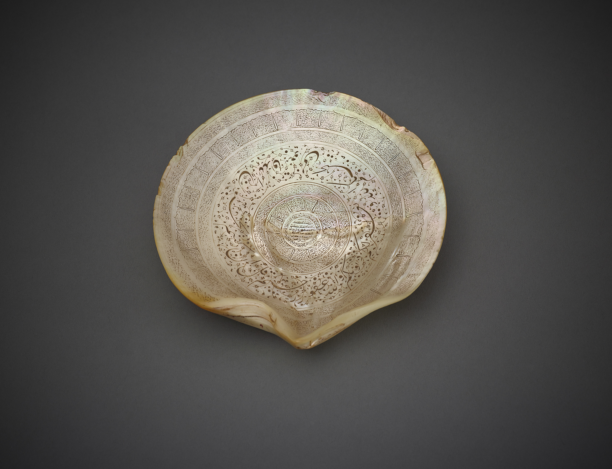 AKM665_Shell September 18, 2014 Discovering the Aga Khan Museum: Masterpieces from the Collection 2000 × 1532 Shell With Inscriptions India (Historic Hindustan), 18th century Incised mother-‐of-‐pearl Diameter 14.5 cm AKM665 Shell With Inscriptions India (Historic Hindustan), 18th century Incised mother-‐of-‐pearl Diameter 14.5 cm AKM665