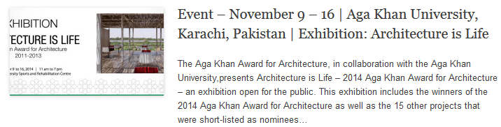 The exhibition “Architecture is Life” presents the 20 projects, located in 15 different countries, which were shortlisted during the 2011-2013 Award cycle. It is open to the public from November 9 to 16, from 11:00 am till 7:00 pm, at the AKU Sports and Rehabilitation Centre.