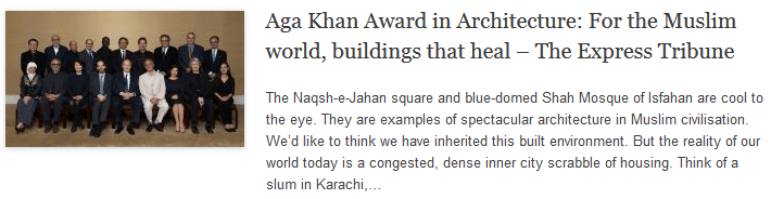 Many in Pakistan have contributed to the Award procedures during the last twelve cycles. Four local projects are among the 110 recipients so far.