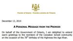 ~ Joint Statement by Ministers Kenney and Baird extending birthday wishes to