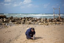 Dror Planer of the Israel Antiquities Authority collects atimid period gold coins that were found in the seabed in the Mediterranean Sea near the port of Caesarea National Park in Caesarea, Israel, Wednesday, Feb. 18, 2015. A group of amateur Israeli divers have stumbled upon the largest collection of medieval gold coins ever found in the country, dating back to the 11th century and likely from a shipwreck in the Mediterranean Sea. (AP Photo/Ariel Schalit)
