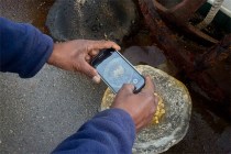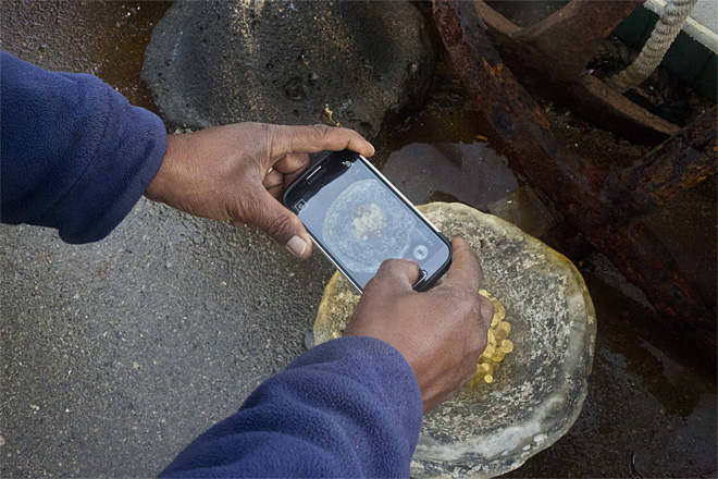 A worker from the Israel Antiquities Authority photographs Fatimid period gold coins that were found in the seabed in the Mediterranean Sea near the port of Caesarea National Park in Caesarea, Israel, Wednesday, Feb. 18, 2015. A group of amateur Israeli divers have stumbled upon the largest collection of medieval gold coins ever found in the country, dating back to the 11th century and likely from a shipwreck in the Mediterranean Sea. (AP Photo/Ariel Schalit)