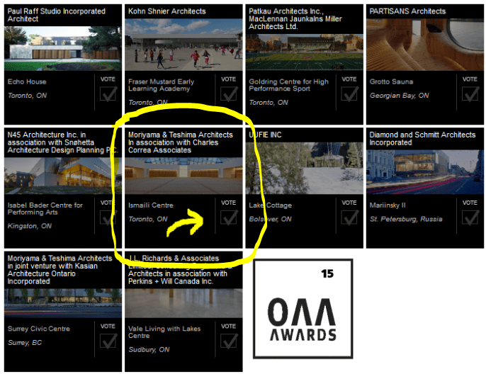 - Click this link Ontario Association of Architects | 2015 People’s Choice Awards to vote