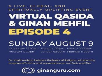 Episode 4: Virtual Qasida & Ginan Mehfil Hosted by Ginanguru Sunday August 9, 2020 - Ginanguru is hosting the 4th Episode of the Virtual Qasida & Ginan Mehfil tomorrow, Sunday,…