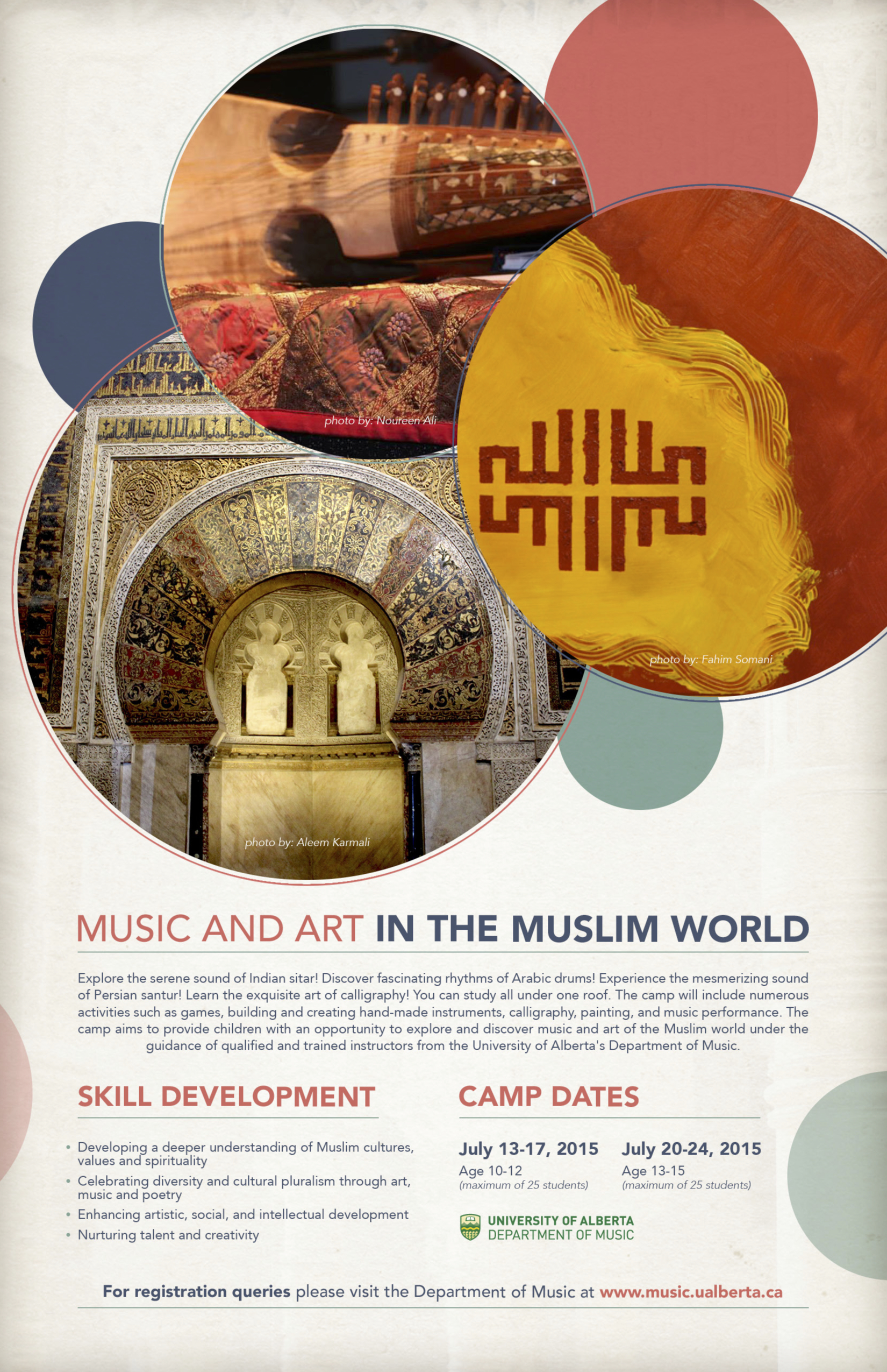Explore the serene sound of Indian sitar! Discover fascinating rhythms of Arabic drums! Experience the mesmerizing sound of Persian Santur! Learn the exquisite art of calligraphy! You can study all under one roof. Do not miss this unique opportunity to join Music and Art in the Muslim World summer camp at the University of Alberta. The camp will include numerous activities such as games, building and creating hand-made instruments, calligraphy, painting, drama, and music performance. Accomplished musicians, painters and artists will deliver presentations and enlighten students with their rich experiences and contributions. The camp aims to provide children with an opportunity to explore and discover music and art of the Muslim world under the guidance of qualified and trained instructors from the University of Alberta’s Department of Music.