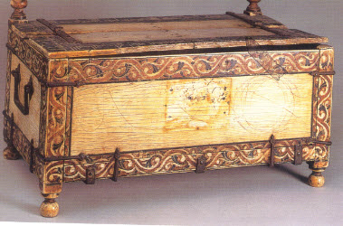 Another North African Fatimid luxury artwork to have survived is an ivory box made for Imam al-Mu’izz at Mansuriyya between 953 and 973, currently in the Archaeological Museum, Madrid. The box, now held together with iron hinges and clamps, which were later additions, has an inscription on the lid: