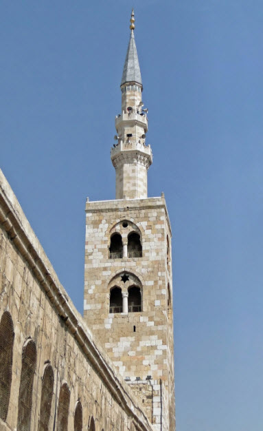 minaret-of-jesus-isa-umayyad-mosque November 13, 2016 His Highness the Aga Khan: “Syria has been at the crossroads of civilisations for over 2500 years – an ancient witness to the fruitful interaction of different peoples and cultures.” 383 × 626 Minaret of Jesus (Isa), Umayyad Mosque, Damascus, is the tallest minaret of the mosque. Photo: Wikipedia