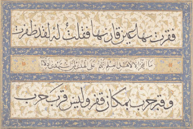 Calligraphy July 25, 2017 Persian miniature painting influenced the art of decorating book covers 666 × 445 Opaque watercolour, ink and gold on paper, Quran manuscript, Safavid Iran, c. 1600
