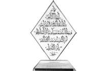 A bespoke plaque etched with the opening ayah of Sura al-Hujarat, featured in the Diamond Jubilee emblem, in a kufic script. The translation is etched on the base along with the motif. Available in 2 sizes.