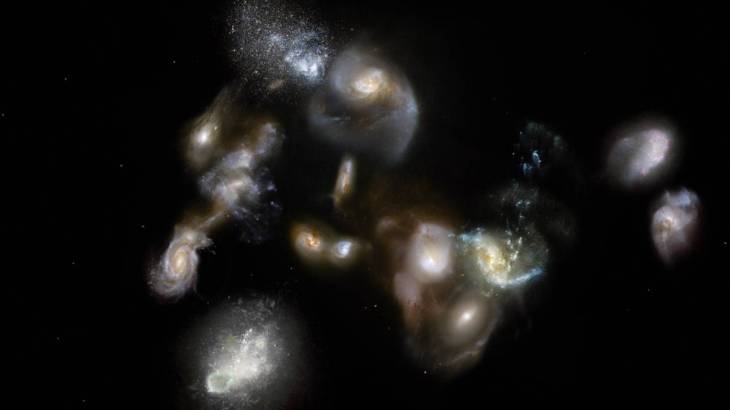 A model from the researchers suggest the newly discovered 14 galaxies will become one giant elliptical galaxy — one of the most common in the universe — with a halo of galaxies, dust and stars. It will then grow, achieving a mass 1,000 trillion times that of our sun, similar to one of the most well-studied clusters we know, the Coma cluster.