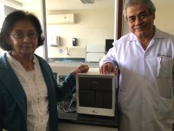 IMG_3705 April 27, 2018 Dr. Amina Jindani: Ibn Sina Award for medicine conferred on world renowned specialist for life long commitment to the eradication of tuberculosis 252 × 189 Handing over a Gene Expert machine, donated by her charity, World Without TB, to Dr. Eduardo Ticona at the Hospital Dos de Mayo, Lima , Peru in April, 2016.