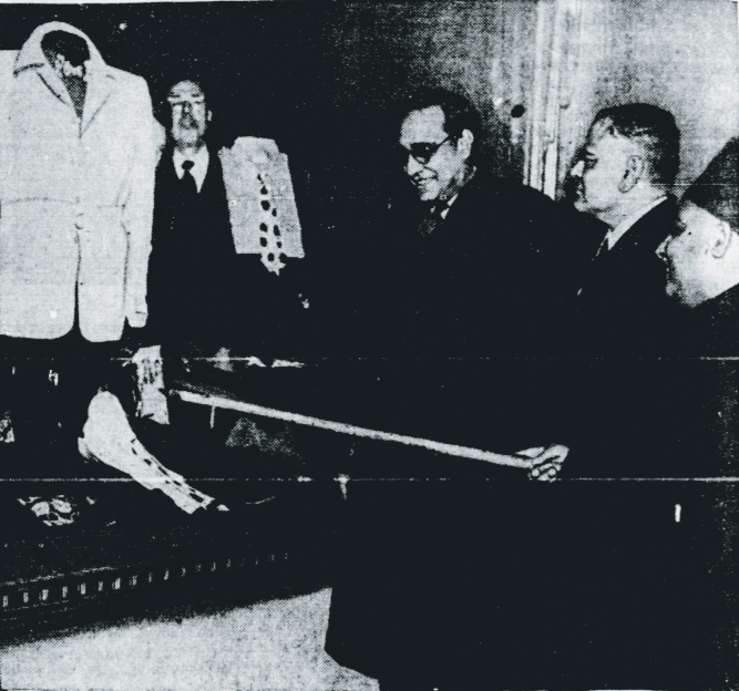 This picture shows members of the Indian Trade Commission examining occidental clothing during a recess of their conference held at New York during 1946.