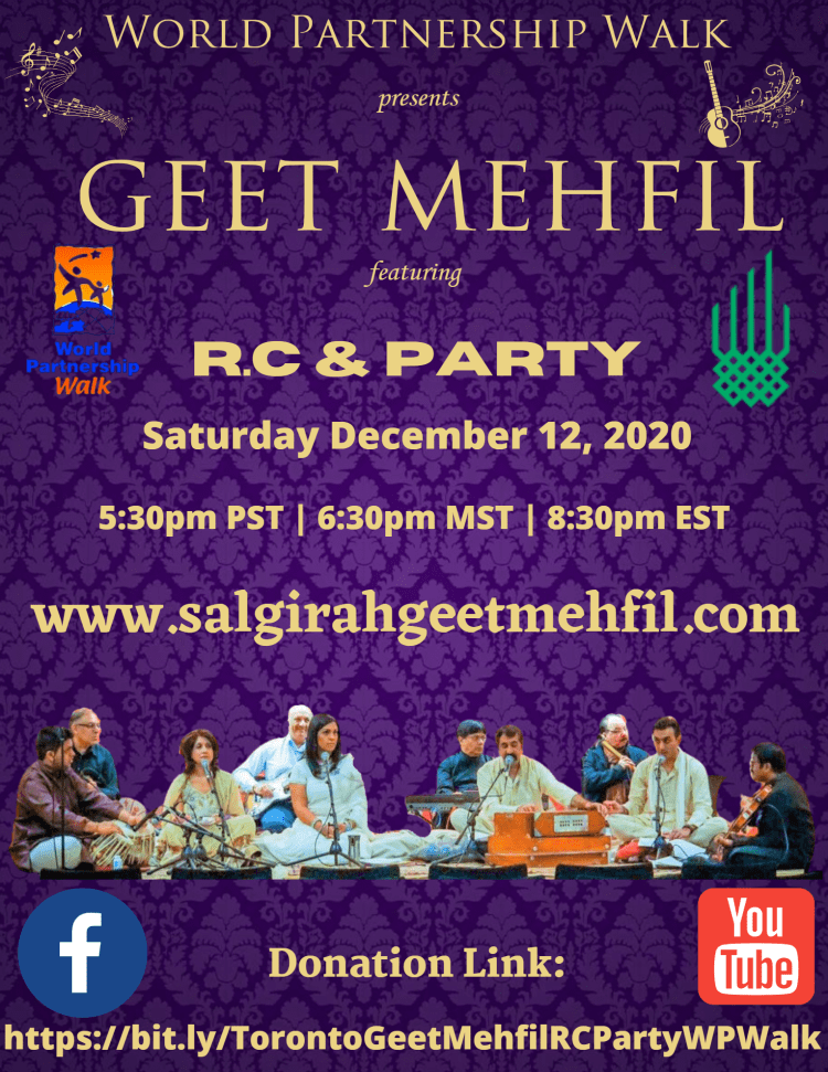 As we embark on Mawlana Hazar Imam’s 84th Salgirah celebration, please join R.C & Party for this World Partnership Walk event where we can come together in a program with selected Geets and participate in the fundraising efforts to help alleviate Global Poverty.