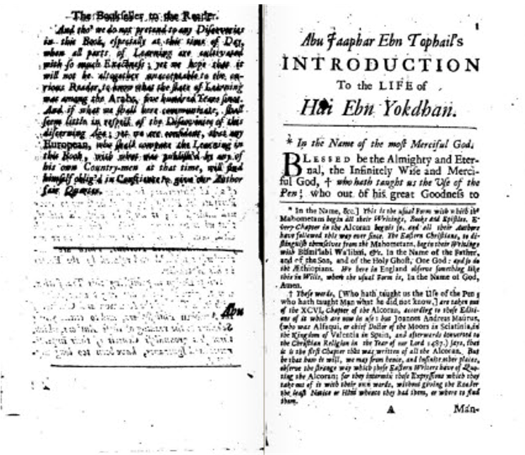 By the time Defoe sat down to write what would become his most famous novel, Ibn Tufayl’s Hayy ibn Yaqzan had been a best-seller for centuries, captivating Elizabethan “natural philosophers” (scientists), Renaissance humanists…. all of whom looked to the plot and philosophy of the book as a road map for what scholar Majid Fakhry, in his study A History of Islamic Philosophy, described as the “natural progression of the mind towards truth” (Aramco).