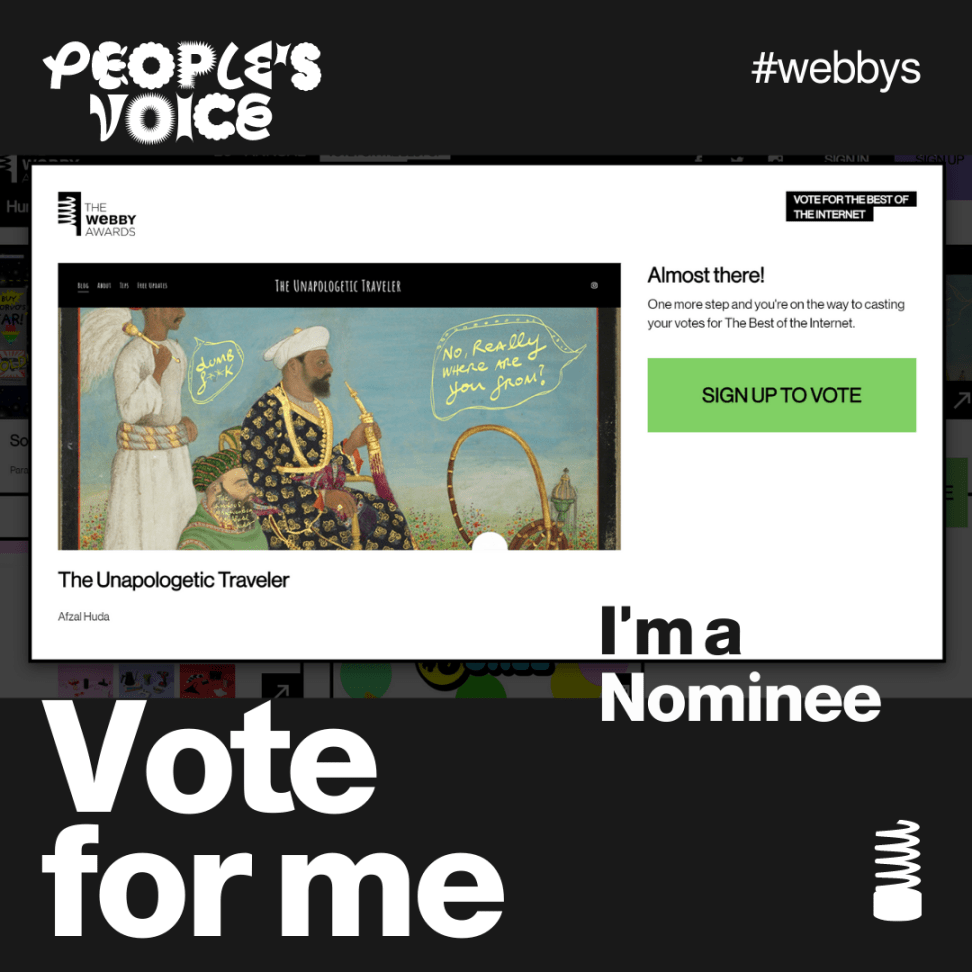 Afzal Huda of Toronto, Canada, has been nominated for the 2022 Webby Award. Huda is a Canadian-born South Asian writer, photographer, and a filmmaker, whose work has been featured in The New York Times. More about Huda here. His blog: The Unapologetic Traveler