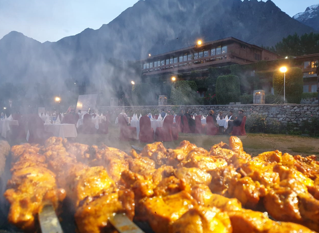 Renowned throughout Gilgit for its Pakistani, Continental, and Chinese cuisine. I enjoyed the lavish food with views of the hotel’s lawns, mountains, and the live playing of Rubab and Tabla of the unforgettable tune of Shahrukh’s “Baazighar.” The restaurant serves breakfast, lunch, and dinner daily. On Sundays High Tea is served accompanied with by buffet and a la carte service. Breakfast is complimentary for all the hotel guests.