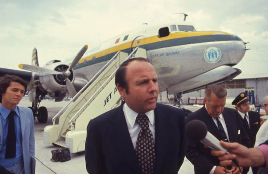 Prince Sadruddin Aga Khan , UN High Commissioner for Refugees at the time of the Ugandan Asian Expulsion, at Geneva Airport. The UNHCR was part of ” the alternative pathways to resettlement ” Photo: Courtesy of the UNHCR ©
