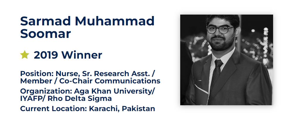 Sarmad Soomar is a registered nurse and holds degrees in nursing and health policy and management. He is currently involved in clinical teaching and education domain at the school of nursing at Aga Khan University. He is a riseup fellow and champion of reproductive health, rights, leadership and justice. His contributions involve community mobilisation and engagement for health promotion and support in reproductive health and gender mainstreaming. He has also worked with various sensitive populations in Pakistan and internationally to promote their inclusion in health and wellbeing. Recentlly, he has been bestowed with the Impact and Innovation Award by the Aga Khan University on its inaugural Founders Day.