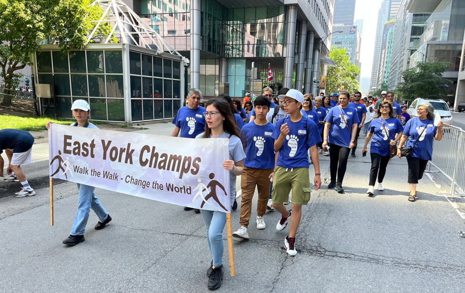 Sunday, June 25, 2023 was an amazing and most memorable day. At the World Partnership Walk in Toronto [Canada], the East York Champs team and members related with the team were honoured with a thunderous applause by thousands of spectators at the prestigious David Pecaut Square in Downtown Toronto. The achievements are: