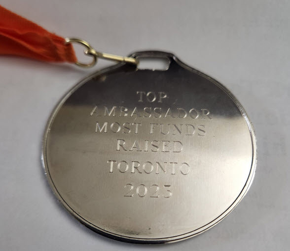 - One of the members of the East York Champs team (who was also the past captain of the team) was presented with the Top Ambassador medal for having raised the highest funds.