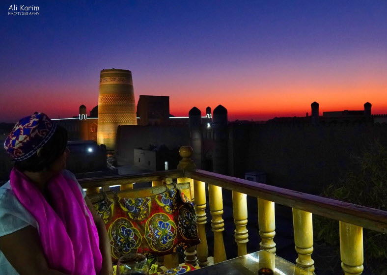 Ali & Dilshad’s travels continue in Central Asia, this time exploring Khiva, Uzbekistan. Khiva is located in northwest Uzbekistan, and about 5 miles as the crow flies from the Turkmenistan border. Per archeologic data, it was established 1500 yrs ago. The presence of fresh water from wells and farming from irrigation using the nearby Amudarya river allowed it to develop and it became a major trading post along the Silk Road. It is a fascinating town and well worth visiting. Since 1990, the inner city of Ichan Kala has been a UNESCO World Heritage Site.
