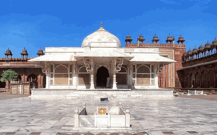 When the Sheikh died, Akbar had a mausoleum built for him in the courtyard of the mosque complex.