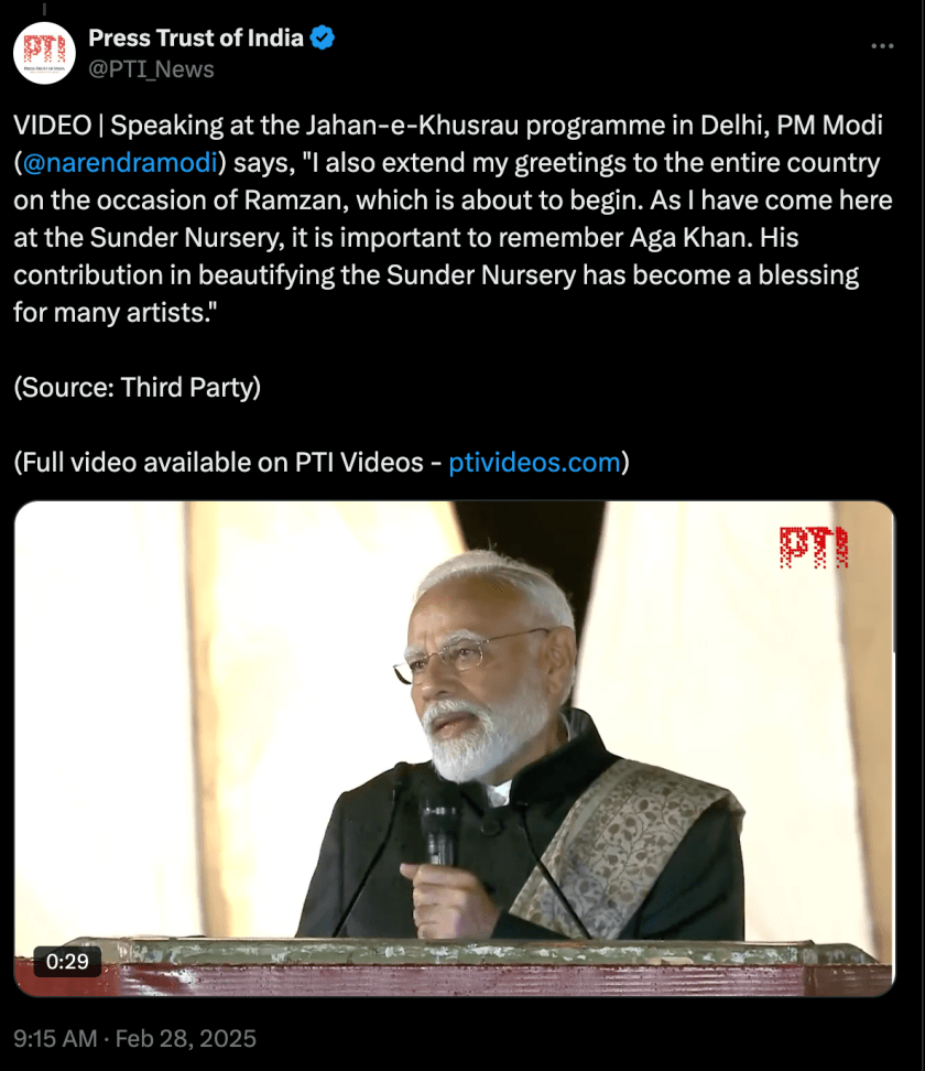The Prime Minister also commended the efforts of Late His Highness the Aga Khan in the restoration and beautification of Sunder Nursery, the event’s venue. This recognition underscored the Late Aga Khan’s commitment to cultural preservation and his role in transforming the historic garden into a vibrant public space that beautifully merges heritage with modernity.