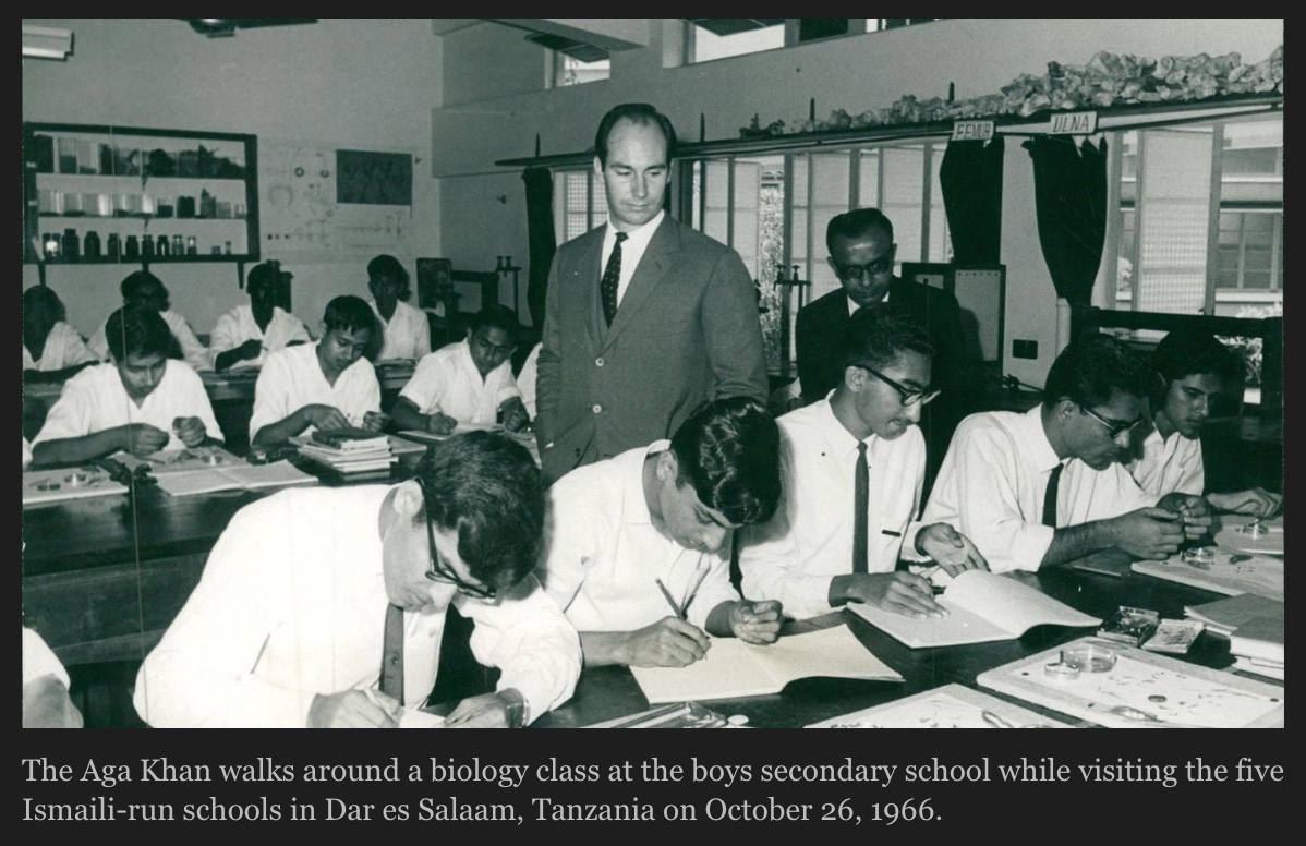 Tanzania’s AKDN institutions pay tribute to Aga Khan, pledge to sustain his work. The Late Aga Khan IV walks around a biology class at the boys secondary school while visiting the five Ismaili-run schools in Dar es Salaam, Tanzania on October 26, 1966.