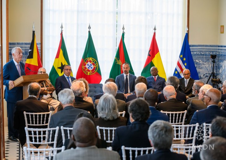 Lisbon, Portugal. April 26, 2024 – Heads of State from the Community of Portuguese Language Countries (CPLP) were hosted at the Diwan of the Ismaili Imamat. The then Prince Rahim Aga Khan and Prince Aly Muhammad Aga Khan welcomed Portugal’s President Marcelo Rebelo de Sousa and leaders from other Lusophone countries. In attendance were Their Excellencies José Maria Neves, Umaro Sissoco Embaló, José Ramos-Horta, and Carlos Manuel Vila Nova – the Presidents of Cabo Verde, Guinea-Bissau, Timor-Leste, and Sao Tome and Principe, respectively, accompanied by their delegations. Other guests at the event included the President of Portugal’s Parliament, José Pedro Aguiar-Branco, Portuguese Foreign Minister Paulo Rangel and other senior state officials and diplomats, and the leaders of the Aga Khan Foundation (AKF) in Portugal.