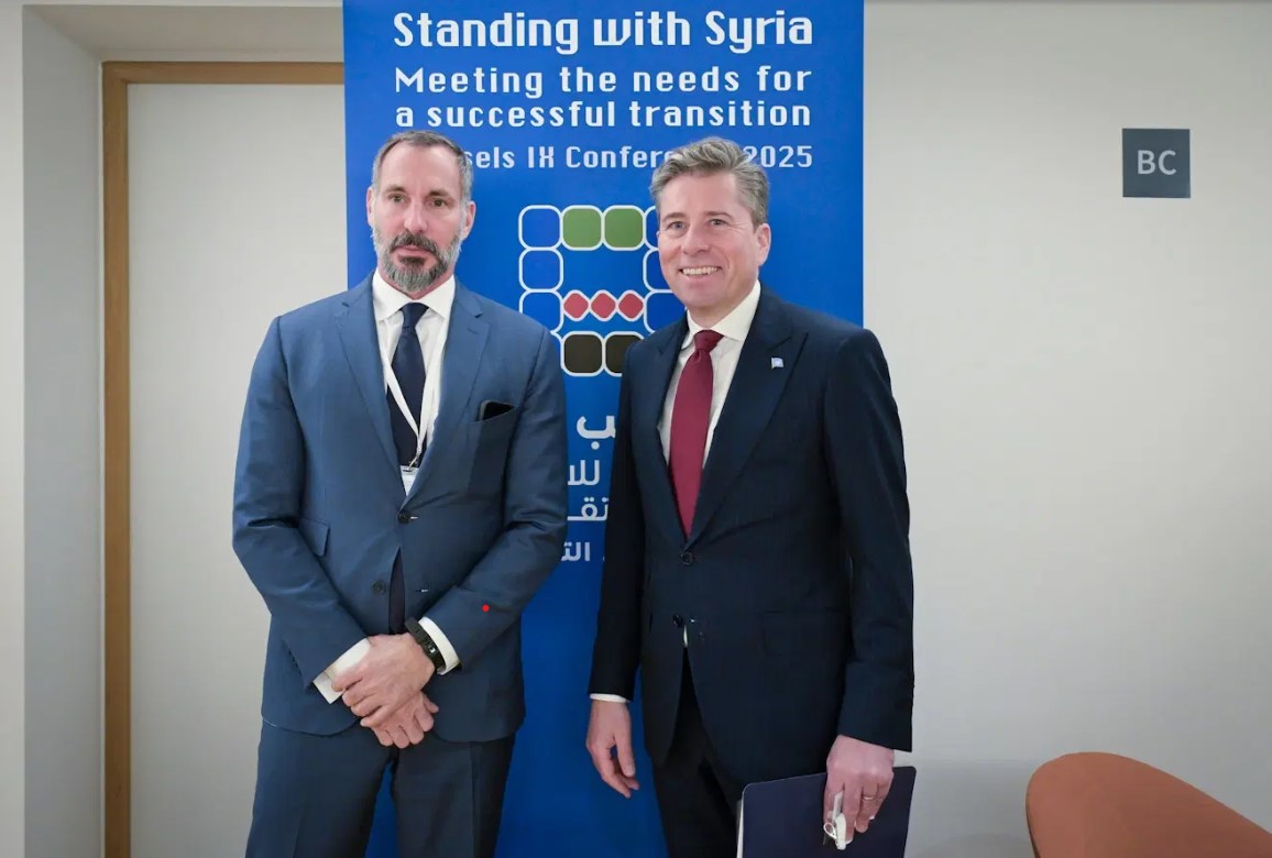 Brussels, Belgium. March 17, 2025: His Highness Prince Rahim al-Hussaini Aga Khan V with Tom Fletcher, United Nations Under-Secretary-General for Humanitarian Affairs and Emergency Relief Coordinator, United Nations Office for the Coordination of Humanitarian Affairs. Image credit: AKDN / DPMN
