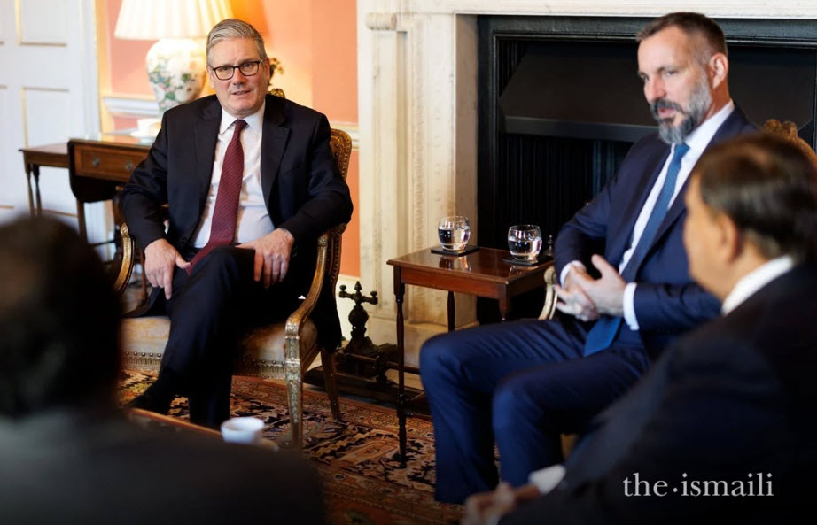 Mawlana Hazar Imam was welcomed to 10 Downing Street on Wednesday, 4 February, by Prime Minister of the United Kingdom Sir Keir Starmer. They discussed strengthening cooperation on international development and humanitarian initiatives, promoting pluralism and interfaith relations.